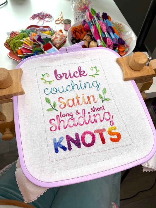 Advanced Lettering Sampler Page - Hand Embroidery Pattern