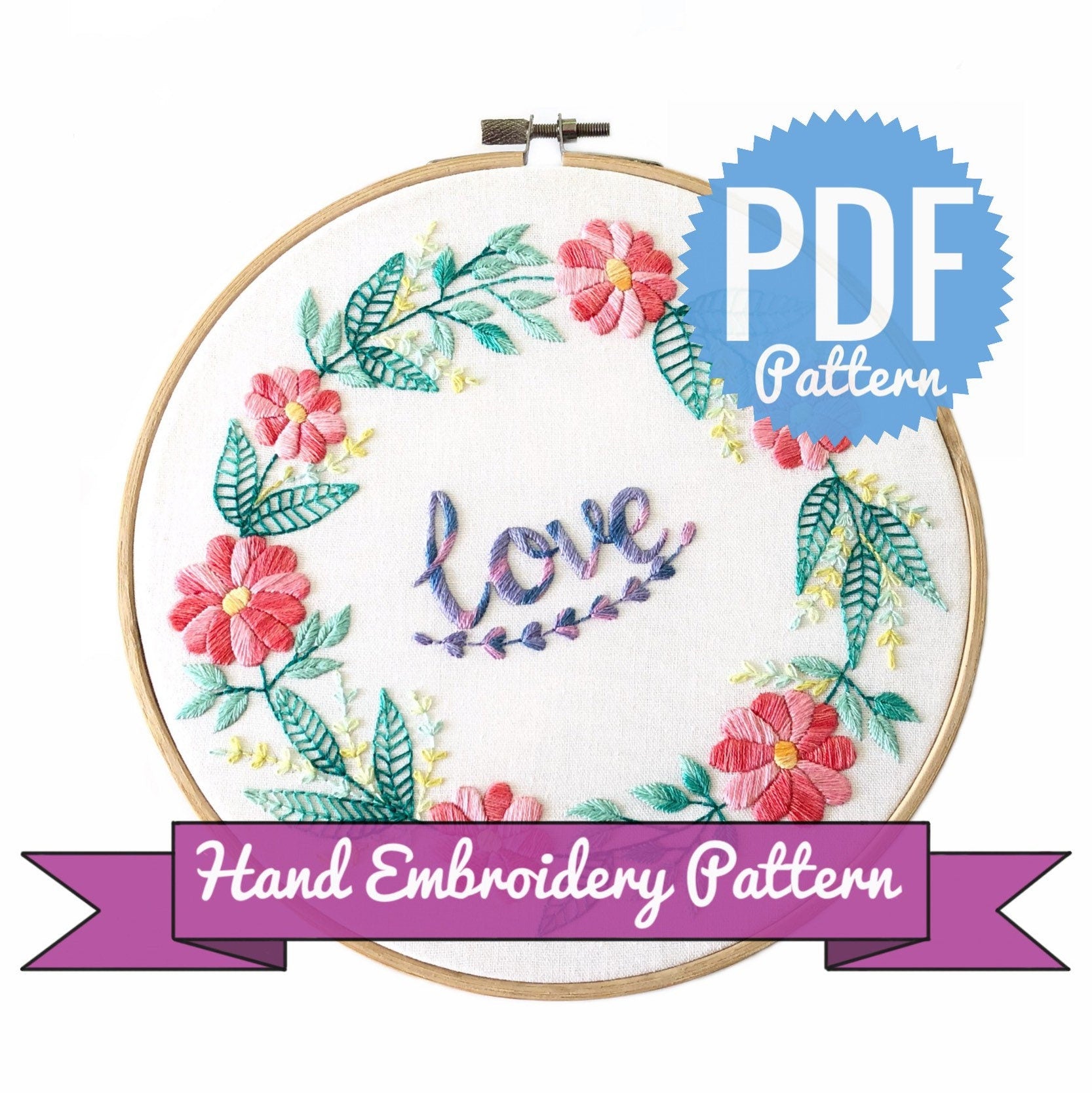 Love Flower Wreath - Hand Embroidery Pattern