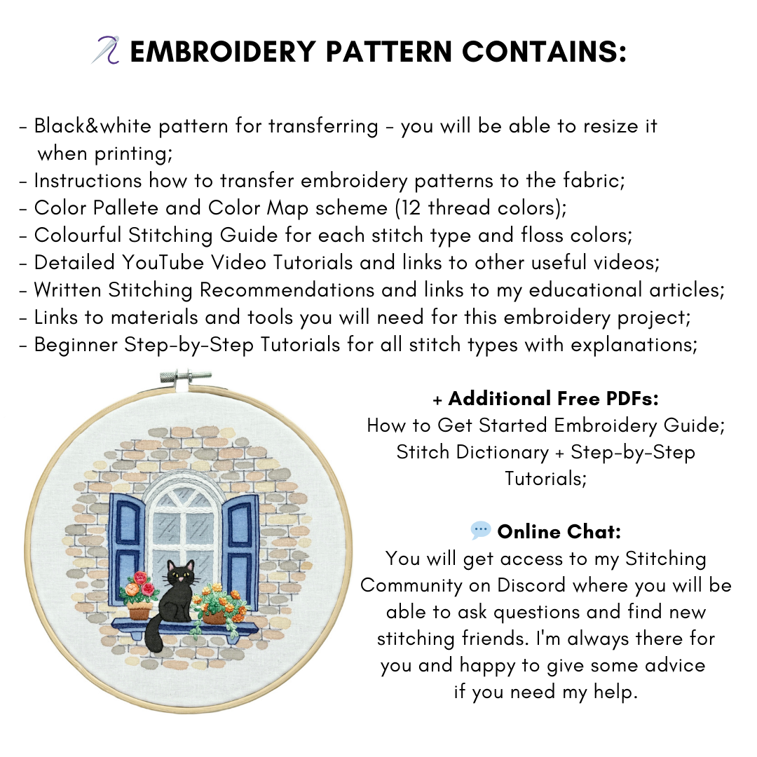 The pattern contains all needed instructions to complete this embroidery (20 pages) + Beginner Guide. This pattern is suitable for beginners with some experience, intermediate and advanced stitchers as well.