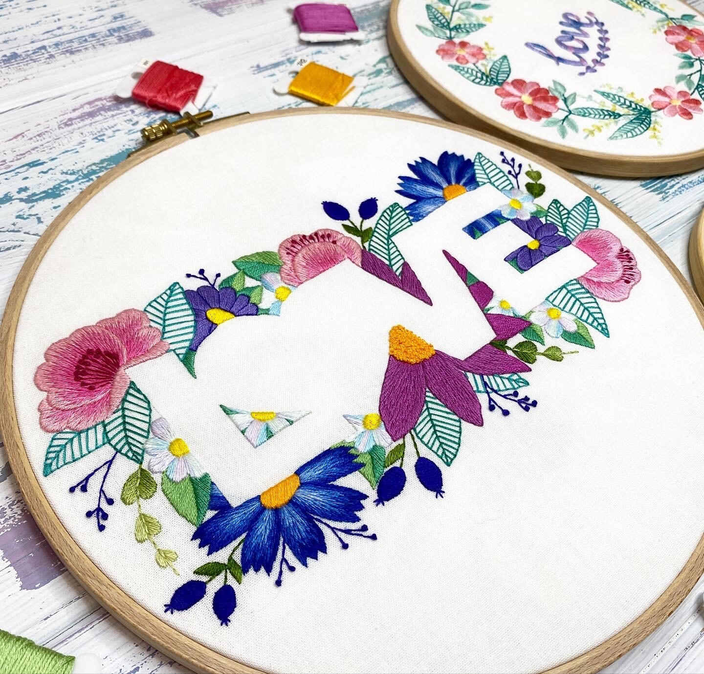 Those Floral Embroidery designs are perfect projects for you if you want to make a beautiful personalized gift for Valentine's Day or Mother's Day! You will learn a lot of techniques by watching my stitch-along course and scale your embroidery skills to the next level. They are fun and interesting projects, you can place any custom text inside.